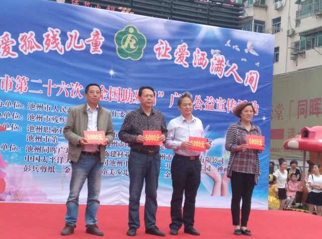 5月13日上午,市残工委在同晖广场举行盛大“爱孤残儿童,让爱洒满人间。”扶残助残捐赠活动,我院医务人员在脑瘫儿童康复工作中成绩显著,市残工委特奖励5000元现金。我院陈仲琪院长代表康复科医务人员领奖。