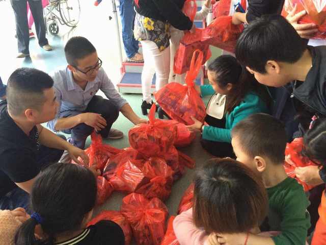 5月14日上午,市二院团委书记金磊,副书记吴柳、陈芳赴东院区康复科看望、慰问30名脑瘫儿童及家属,为脑瘫儿童赠送玩具、营养品。金磊一行鼓励孩子家长要树立坚定的信心,战胜困难,积极配合医护人员的治疗,以取得良好的治疗效果,帮助孩子早日康复。