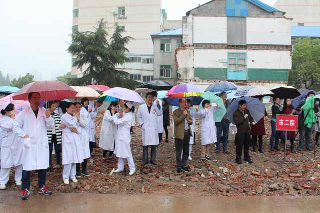 4月26日8时18分,池州市第二人民医院举行了危旧病房改建工程1#、2#病房综合楼开工仪式。池州市卫计委党组书记、主任陈建淮,贵池区人民政府副区长程菲菲,贵池区卫计委党组书记、主任金继三,贵池区卫计委党组副书记、计划生育协会秘书长桂光华,芜湖市恒升建筑有限责任公司董事长杨克升,安徽南巽监理有限公司经理肖至新,市二院领导、中层干部、职工代表、施工单位代表100余人参加了开工仪式。开工仪式由市二院副院长杨善敏主持。