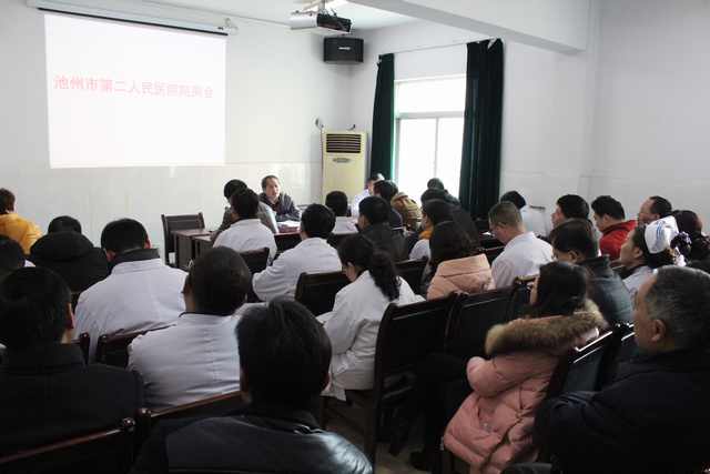 会上陈院长就2015年的工作做了简要回顾总结,对医院有关运行数据进行了解读,着重强调了春节期间医院医疗安全等重点工作,还从新大楼建设、临床路径推广、医共体工作等十个方面对2016年医院的整体工作思路进行了部署。随后,纪委陈瑞芳书记带领大家学习了贵池区纪委《关于2016年元旦春节期间加强作风建设严格执行问责的通知》(贵纪发〔2016〕2号)并就党风廉政建设工作提出具体要求。最后,相关分管领导、部分职能科长还就各自分管范围内的当前与今后工作作了简要汇报。