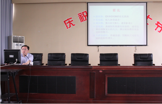 目前正值春夏之交,是霍乱、手足口病为主的肠道传染病高发时期,为切实保护广大群众的身体健康,进一步做好肠道传染病防控工作,我院科教科根据相关文件精神,于5月13日下午,开展了“夏季肠道传染病防控知识”全员培训专题讲座,感染科包文军主任重点介绍了以霍乱、菌痢、手足口病为主的夏季传染病的预防知识,包主任的生动讲解,增强了我院医务人员对手足口病及肠道传染病的防控意识,提高了其诊断和治疗水平,更好地为百姓提供了健康保障。