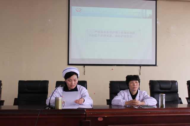 会上,护理部杨丽萍主任首先围绕2014年主要护理工作完成情况和重点开展工作进行了总结,她从护理管理、人才培养、优质护理服务等方面一一做了汇报,同时也指出了工作中的不足,随后她对2015年医院护理工作进行了安排部署,提出2015年护理部将一如既往地在服务、质量、安全、培训等方面展开工作。