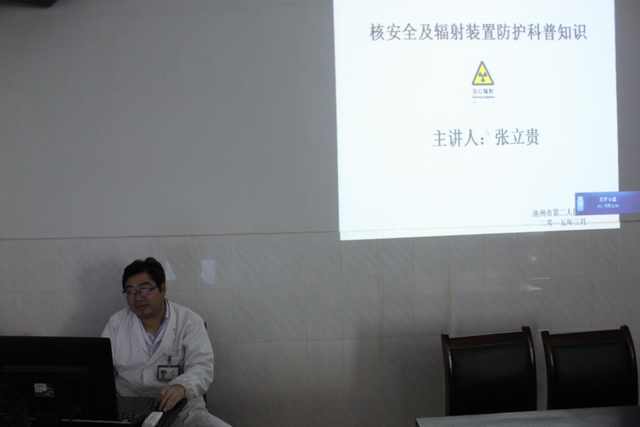 3月25日下午,在我院行政楼二楼远程会诊中心举行“核安全及辐射装置防护科普知识”讲座,讲座由放射科主任张立贵主讲,来自医务科、设备科、放射科、放疗中心等科室代表约30余人聆听了讲座。