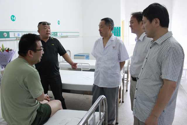 7月9日,在保卫科科长陈新建的陪同下,医院党委副书记陈瑞芳,副院长杨善敏、陈仲琪,党办主任张庆多共同看望、慰问了在东院区住院的区消防大队工程师江诗咏同志,院领导代表医院送去500元慰问金,表达了全院职工的关怀之情,并祝愿其早日康复。