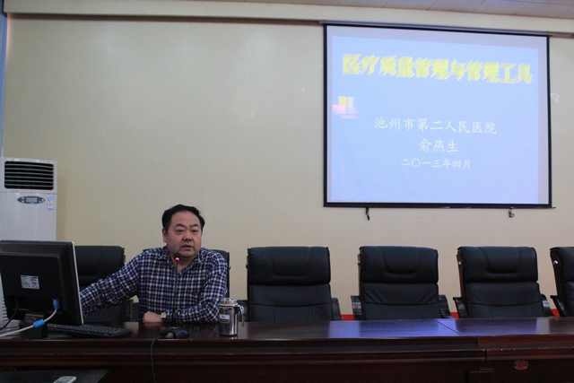 4月18日下午,我院门诊四楼会议举办全面质量管理培训,院领导、职能科长、科主任、护士长和质量管理小组成员接受了培训。