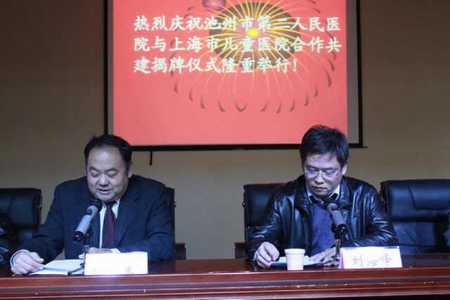 虽然初冬时节的天气有些寒冷,但在池州市第二人民医院四楼门诊会议室内却洋溢着春天的暖意。119日下午,我院与上海市儿童医院合作共建揭牌仪式正是在这里举行。医院领导班子成员、相关职能部门负责人及部分儿科医护人员参加了此次揭牌仪式,揭牌仪式由医院汪国平副院长主持。