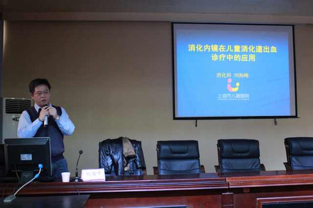 共建仪式结束后,刘海峰副院长、康复中心唐亮主任分别为作了关于《小儿消化道出血的诊治进展》、《儿童康复治疗进展》的专题讲座,两位专家精彩的报告博得了在场人员的阵阵掌声。
