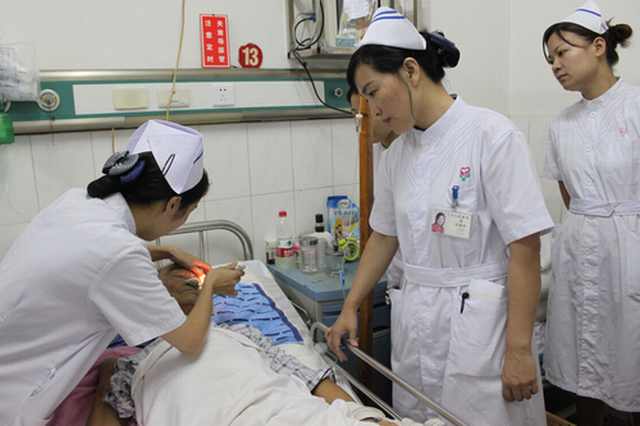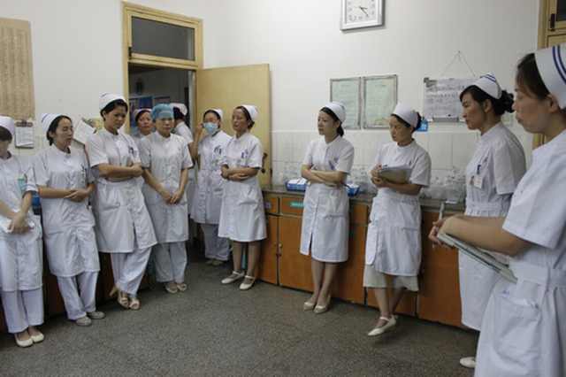 8月3日下午,护理部在神经外科对一位脑出血术后患者进行护理查房,查房由护理部主任杨丽萍主持,护理部副主任桂喜荣,干事吕芬芳、朱荣,相关科室护士长,一病区全体护士参加了此次查房。