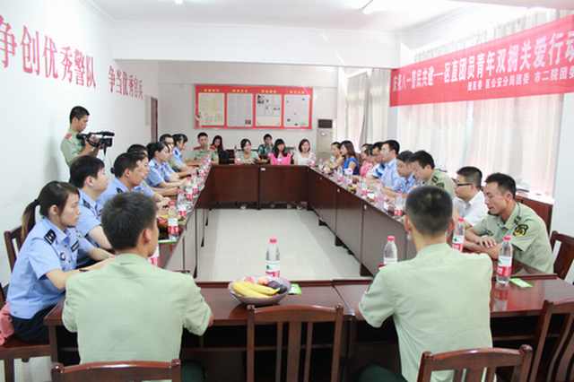 座谈会后,胡队长带领大家参观了部队宿舍、休闲室、图书馆等地,每到一处大家无不感叹军人干净、整洁的生活作风。受一中队邀请在中队餐厅大家用完晚餐后,开展联谊活动,以歌会友,增进感情。