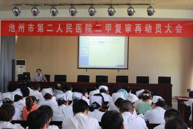为切实做好各项迎审工作,确保全面顺利通过“二甲”医院复审,7月26日下午,我院召开了二甲复审再动员大会,院领导班子,各临床、医技科室主任、护士长及职能科室负责人参加了此次会议。