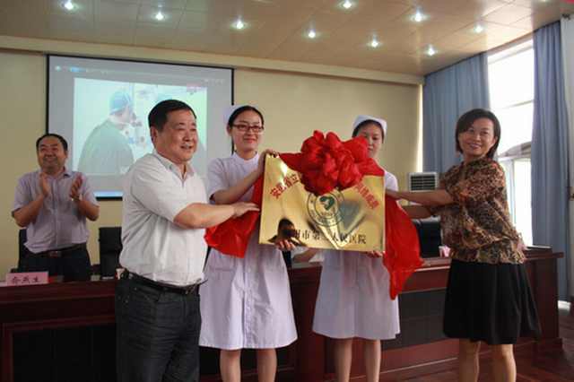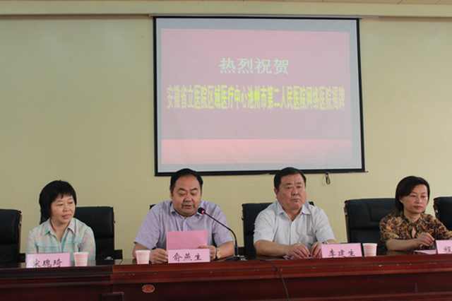 6月16日上午,安徽省立医院区域医疗中心网络成员单位池州市第二人民医院揭牌仪式暨学术讲座在我院门诊四楼会议室举行。安徽省立医院副院长李建生率专家组一行12人,贵池区副区长程菲菲,区卫生局长金继三,我院院长俞燕生,副院长杨善敏、陈仲琪及各职能部门负责人、各科室主任参加了揭牌仪式。揭牌仪式由副院长陈瑞芳主持。
