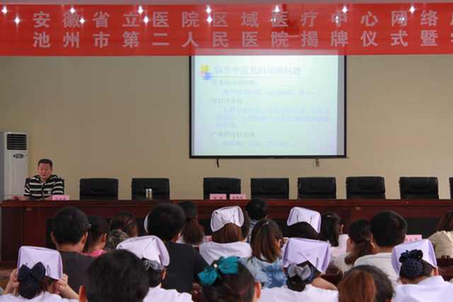 揭牌仪式结束后,省立医院专家进行了主题学术讲座,学术讲座深获医护人员的好评,同时部分专家在医院科主任陪同下,深入病房进行了带教查房等医疗活动。