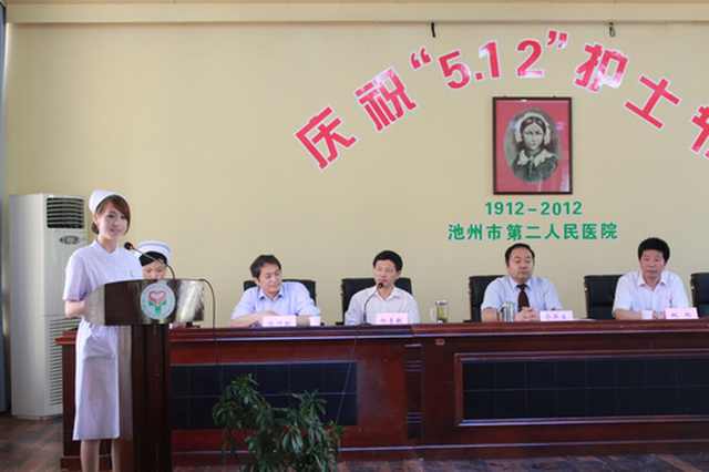 在一片掌声中俞院长作了题为《增强服务意识,争做最美“天使”》的精彩讲话,最后,专程赶来的区卫生系统工会主席姚林代表区卫生局为我院广大护理工作者带来节日的问候,在全场雷鸣般的掌声中,本次大会各项议程圆满完成!