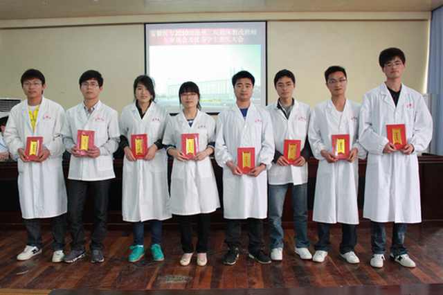 会议还表彰了在我院一年学习中成绩优异的学生,根据医院科教科制定的奖励制度,见习结束后根据平时小测验成绩和见习表现评出六名优秀学生和两名优秀班干,并颁发了荣誉证书和给予现金奖励。会议结束后,安徽医专2010级临床医学专业教改班全体师生进行了合影留念。