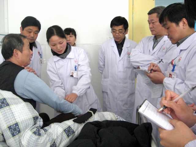 2月18日上午,我院康复医学中心顾问专家倪朝民在康复医学科科主任汪国平的陪同下来我院东区巡诊查房。省康复专家认真细致地检查了每名病员,仔细查看了病历,对各每位病员制定了康复方案。通过省康复专家巡诊,全部伤员得到了安徽省最高水平、最具权威的诊治,确保以最佳的康复方案,最科学的康复措施,取得最好的康复效果。