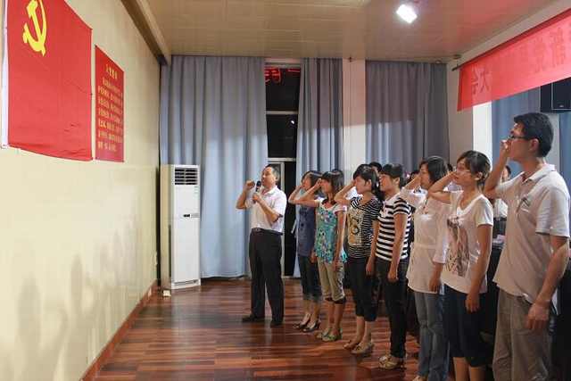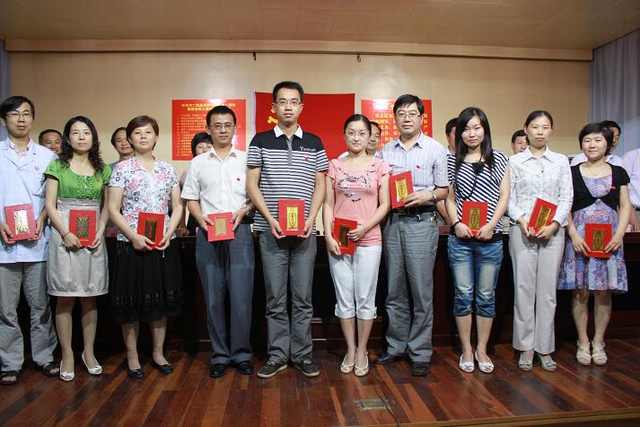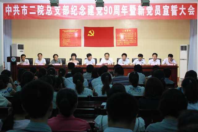 为隆重庆祝中国共产党成立90周年,深入扎实开展好创先争优活动,引导广大党员牢记党的光荣历史,弘扬党的优良传统,中共池州市第二人民医院总支部于2011年6月28日晚在门诊四楼会议室召开了庆祝建党90周年暨新党员入党宣誓大会,会议由院党总支副书记、副院长陈瑞芳同志主持。区卫生局工会主席姚林同志、区直工委副书记林周林同志亲临会场指导并分别作了重要讲话。