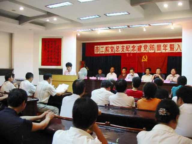 6月25日晚,市二院党总支召开庆祝建党86周年暨新党员入党宣誓大会。大会在嘹亮的《国际歌》声中拉开帷幕。俞燕生书记受总支委托,作《忠实践行“三个代表”重要思想,充分发挥共产党员先锋模范作用》的工作报告,报告系统总结了总支2006年工作,也对今后的工作提出了希望和要求。张庆多、陈京萍、李丽娅、王磊、吴义芳分别代表先进党支部、优秀党员、老党员、新党员和入党积极分子在大会上发言。 区直工委、区卫生局领导汪忠新、李学本、方忠生、吴先锋到会祝贺。 办公室 二OO七年六月二十六日