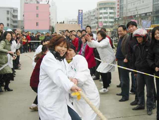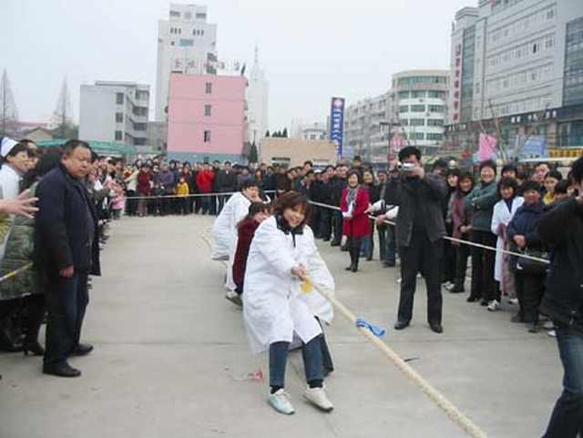 2009年3月6日下午,市二院门诊部广场歌声嘹亮,彩旗飘扬,贵池区卫生系统“庆三八”女职工拔河比赛在我院举行。区卫生局党组书记李学本、区卫生局副局长刘俊玲主持比赛,区妇联主席杨月梅莅临赛场祝贺。