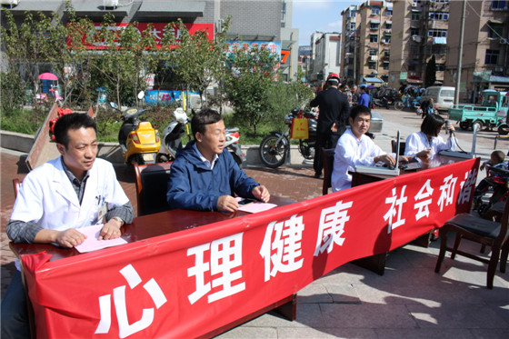 活动中,医务人员免费为广大市民测量血压,并耐心细致的讲解如何早期识别精神疾病,如何防止精神病复发,精神病的家庭治疗、心理健康等方面知识。活动现场张挂了宣传主题标语“心理健康,社会和谐”,并接待咨询约100人次,发放宣传资料200余份。此次活动有效增强了广大市民对精神疾病的了解和自我预防能力,努力营造全社会共同关注精神病人的良好氛围。
