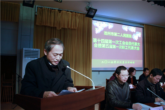 最后,院党委副书记、院长陈仲琪院长发表了讲话,他对上一届工会组织的工作给予了肯定,对选举产生的新一届工会组织表示了祝贺,勉励新一届工会班子要努力工作,满腔热忱地为职工群众办好事、办实事,不辜负广大职工的信任,为医院建设发展做出新的更大的贡献!陈院长还表示,院党委将一如既往地支持工会工作。会上,陈院长还就2016年医院基础建设、信息化建设、医共体、学科建设、医疗质量等方面工作进行了通报,对2017年工作进行了部署。