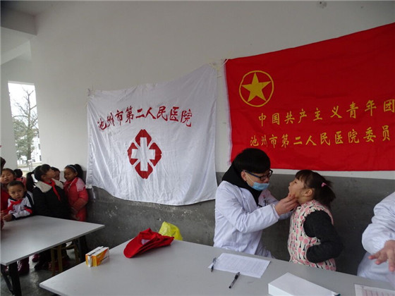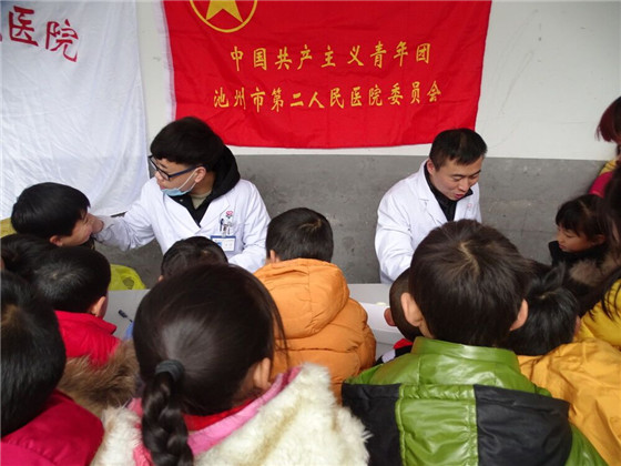 12月27日,著名主持人赵普与他的团队联合中国鸿基金“爱的背包”公益项目走进安徽池州,为棠溪的留守儿童们送去冬日的温暖。我院团委抽调3名青年志愿者组成爱心体检队,跟随赵普团队为当地留守儿童免费体检。活动现场,我院志愿者不厌其烦地为前来就诊的孩子们逐一进行细致耐心的体检,为“爱的背包”公益项目活动作出一份贡献。