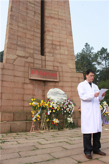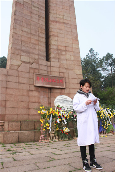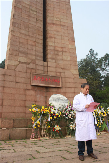 在清明节即将来临之际,为悼念革命烈士,缅怀先烈的丰功伟绩,继承和发扬革命传统。329日上午,我院医技党支部全体党员在党委副书记、院长陈仲琪,党办主任张庆多带领下,来到池州市烈士陵园开展祭奠革命先烈及新党员入党宣誓仪式活动。