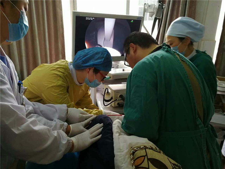 近日我院神经内科入住一位77岁的帕金森病晚期患者,肌肉严重僵直,咽喉部完全瘫痪,不能吞咽,入院前已经一周没有进食水了,喂药十分困难,家属心急如焚。为了尽快缓解症状同时加强营养支持治疗,留置胃管势在必行由于患者吞咽功能完全丧失、配合程度差,经过我院神经内科及消化内科医务人员反复插管均不能成功,若不能成功置管,只有行胃造瘘手术面对从未有过的情况,科室没有退缩、推诿,神经内科盛守权主任与张国柱主治医师仔细分析置管困难原因,并多次与消化内科刘东升主任、许峰副主任医师沟通、协商,制定研究出置管方案看能否在胃镜下置管,但患者高龄,且基础疾病较多,胃镜下置管风险和难度都很大,与家属沟通后取得家属理解,同时制定突发情况抢救预案。