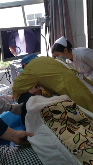 55上午,消化内科王照明主治医师创造性的运用胃镜带入导丝,同时用一次性导管将导丝从鼻咽部穿出鼻腔,然后将胃管顺着导丝置入胃中,置管顺利完成,避免了胃造瘘,病人安返病房,为病人下一步的治疗打下了基础。此胃管放置技术系首次运用两个科室开创性的开展工作,为后类似患者的治疗积累了宝贵经验