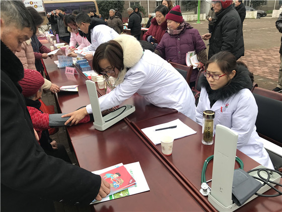 根据《关于举办贵池区2019年文化科技卫生“三下乡”集中示范活动的通知》(贵宣明电[2019]1号)文件精神,2月1日上午,我院选派内科、肿瘤科、神经内科、内分泌科专家赴乌沙镇慈云小区广场为当地居民进行健康义诊。活动当天,虽然天气寒冷,但义诊现场热火朝天,从十里八乡赶来的群众热情高涨,我院医务人员为他们进行健康体检,提供健康咨询,发放宣传手册。我院医务人员良好的服务态度赢得了当地群众的一致赞扬。