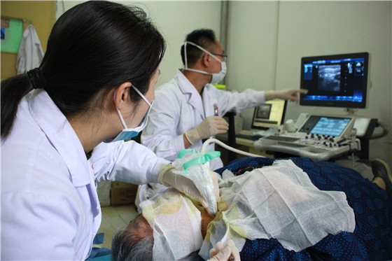 2019年4月1日,我院超声科医生在外科主治医师朱珲及检验科主管技师张震的指导及配合下,成功完成首例超声引导下甲状腺细针穿刺活检术(FNA),为我院超声科又新添一项新技术。