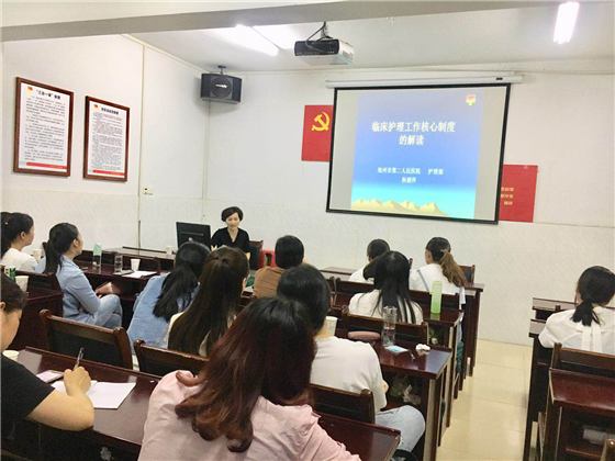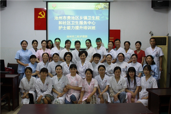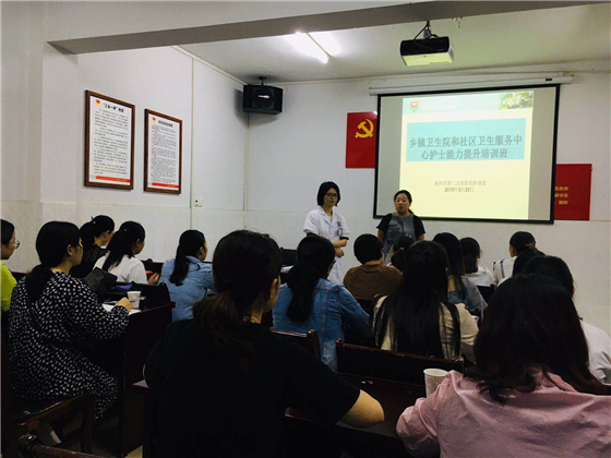 为顺利完成本次任务,我院护理部认真准备,成立了由分管院长为组长的领导小组,以确保培训质量。首先我院护理部通过筛选确立了由副主任护师职称的相关护士长及部分专科护士组成的师资培训队伍,于2019年5月23日召开师资培训会,审查培训课件,护理部主任杨丽萍指导授课。2019年5月25日、5月31日进行两天理论培训,理论培训包括《临床护理工作核心制度的讲解》《人文关怀护理相关知识》《院感相关知识》《慢病管理的相关知识(慢阻肺)》《突发公共卫生事件的应对》、《手卫生相关知识》等符合基层护理的护理质量和管理能力的基本理论和操作。2019年6月3日、4日及5日进行两天半的技能培训,技能培训项目为心肺复苏、血糖测定、皮下注射、静脉输液、无菌技术等操作。培训结束后,对全体培训人员进行了理论及操作技能考核。2019年6月5日下午进行相关科室临床见习,掌握常见病、多发病的临床护理,提高基层医疗卫生机构的护理服务水平。