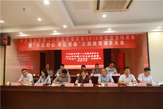 大会在庄严的国际歌歌声中拉开了帷幕,随后,党委书记汪国平作2018年度党建工作总结和“不忘初心、牢记使命”主题教育动员讲话,汪书记总结回顾了我院2018年度党建工作,部署了2019年医院党建具体工作,他希望院党委和五个支部要把开展主题教育与当前中心工作相结合,做到两不误、两促进;要精心组织实施,把“守初心、担使命、找差距、抓落实”作为一个相互联系的整体,贯穿主题教育全过程;要在实现中华民族伟大复兴的新征程上,一心一意跟党走,全心全意为人民服务。