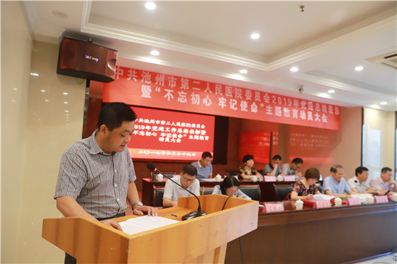 陈仲琪院长在讲话中对出席会议的全体党员同志致以了崇高的敬意,陈院长重点强调了医院安全生产、扫黑除恶、新大楼建设、二甲复审、医保管理等工作,他要求大家要以时不我待,只争朝夕的豪情与壮志,迎难而上,砥砺奋进,实现二院各项工作再上新台阶。