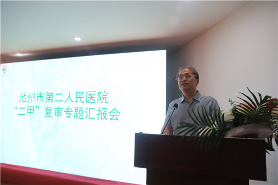 2019年9月12日上午,由池州市卫健委调研员路文敏带队,40余位市专家组成的评审组莅临我院开展二级甲等医院复审工作。