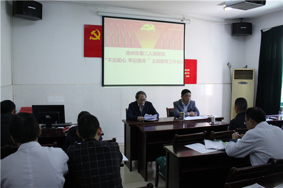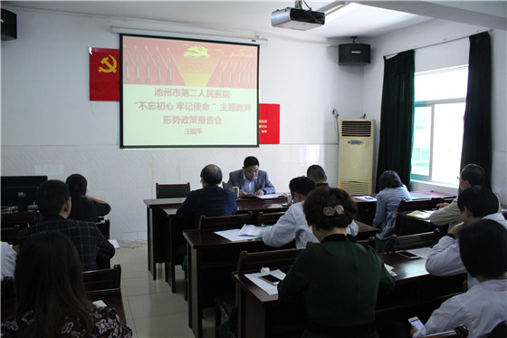 会议最后,汪国平书记作了《中国共产党为什么要开展党内集中教育》形势政策报告。他强调,要提高政治站位,充分认识习近平总书记重要讲话的重大意义。全院各党支部和广大党员干部要自觉把思想统一到习近平总书记重要讲话精神上来,聚焦主题,主动作为,按照“守初心、担使命、找差距、抓落实”的总要求,把不忘初心的标尺立起来,把牢记使命的责任扛起来,把基层党组织的战斗堡垒作用发挥出来,把党员干部的先锋形象彰显出来,为医院实现跨越式发展积蓄重要力量。
