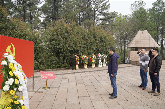 在烈士纪念碑前,大家默默肃立,敬献了花篮,在沉重庄严的气氛下向革命先烈默哀致敬;两名新党员进行入党宣誓,大家共同重温入党誓词,绕行并瞻仰革命烈士纪念碑,表达了对先烈的哀悼和敬仰之情,随后大家共同擦拭了革命先烈的墓碑。