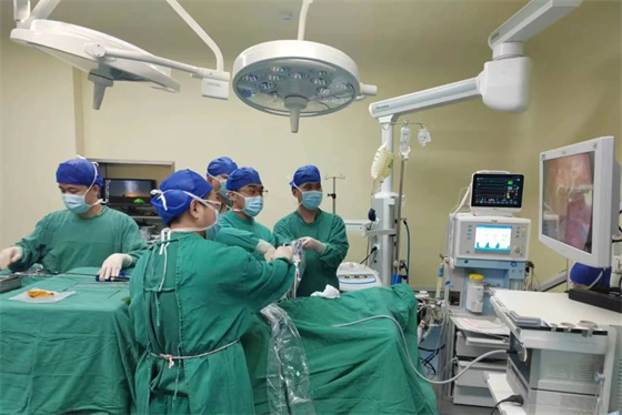▲坐诊结束后,金润森博士带领我院胸外科医生完成了首台上海瑞金医院池州市第二人民医院肺结节诊疗中心手术