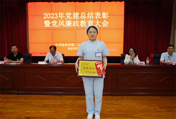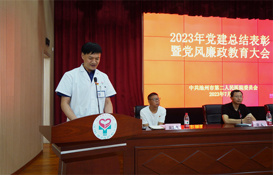 章胜华代表院党委对2022年党建工作进行了总结,一是强化职责,落实责任加强领导班子思想建设;二是勠力同心,书写“战疫”优异答卷;三是健全组织,党建工作质量和水平不断提升;四是加强党风廉政建设,强化执纪问责。章胜华指出,荣获2021年及2022年“两优一先”的同志们在过去两年里,充分发挥了基层党组织的战斗堡垒作用和共产党员的先锋模范作用,圆满完成了疫情防控和医院发展各项工作任务。他号召全院党员同志,向他们学习,学习他们开拓创新,攻坚克难,无私奉献的职业精神,始终信党、爱党、为党,牢固树立“四个意识”,坚定“四个自信”,坚决做到“两个维护”,为推动二院改革发展、实现创建“三甲”医院奋斗目标,再立新功、再创佳绩!