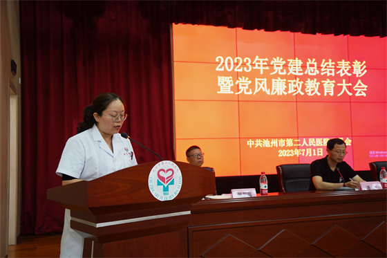 为庆祝中国共产党成立102周年,7月1日上午,院党委在后勤综合楼四楼多功能会议室召开2023年党建总结表彰暨党风廉政教育大会,党政班子成员、全体党员及中层干部参加了大会,会议由党委副书记、副院长朱珲(主持工作)主持。