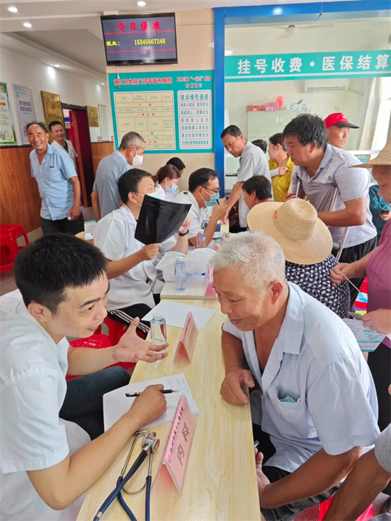 为庆祝第6个“中国医师节”,全面落实“以病人为中心”的服务理念,提高全民健康意识,普及预防保健知识,提高群众健康知识水平,促进居民身体健康,2023年8月14日,我院内、外科党总支组织外科、骨科、内分泌科、神经内科、妇产科、眼科及耳鼻喉科多名党员医护人员到秋江街道卫生院进行多学科义诊和健康宣教培训活动。