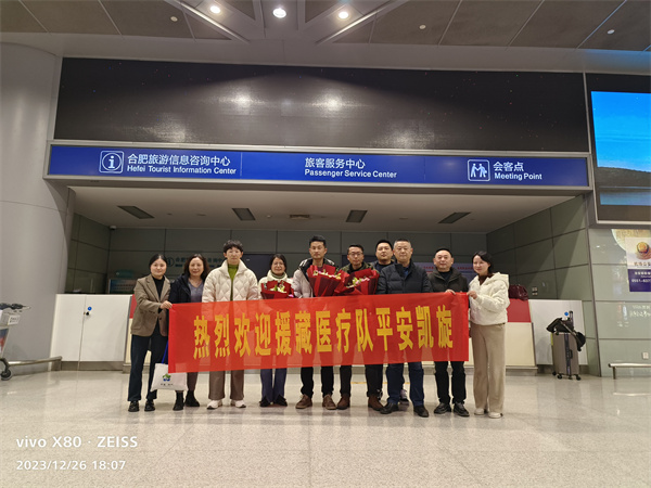 12月26日,我院妇产科医生余爱清不辱使命,圆满完成为期半年的援藏工作任务,院党委书记章胜华、人事科科长吕芬芳赴合肥迎接余爱清医生回池。