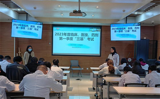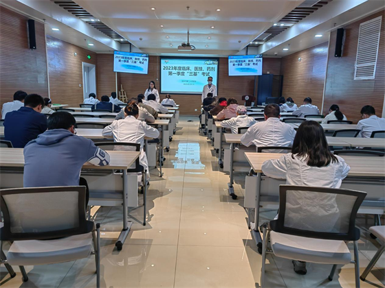 根据2023年度“三基三严”培训及考试考核计划,科教科于2023年3月29日--31日组织了第一季度“三基”理论考试。来自临床、医技、药剂科室中级职称以下(含中级待聘)人员共115人参加了考试,纪委书记王敏凤、副院长朱珲参加了监考。