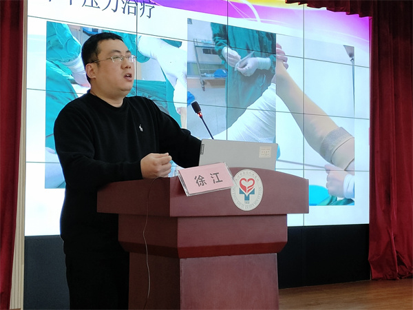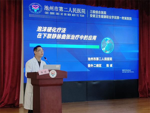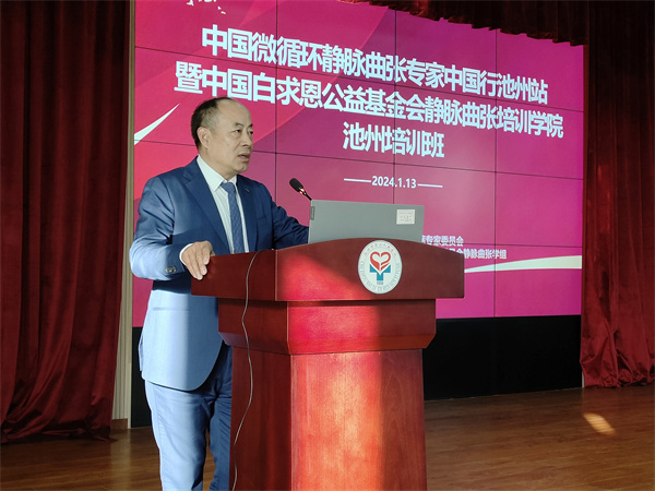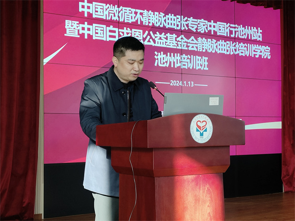 为进一步提高及规范池州市下肢静脉曲张治疗整体诊治水平,加强专业人员的沟通与交流,共同推动本地区血管外科专业的发展。1月13日上午,中国微循环静脉曲张专家中国行池州站暨中国白求恩公益基金会静脉曲张培训班在我院顺利召开,并授予我院“下肢静脉曲张微创治疗规范化培训基地”。上海交通大学附属上海第六人民医院的梅家才教授,中国科学技术大学附属第一医院的王晓天教授,铜陵市人民医院的徐江教授,区委卫生健康工作委员会委员、区计划生育协会秘书长周伟胜、贵池区医共体成员单位、民营医院代表参与揭牌仪式。