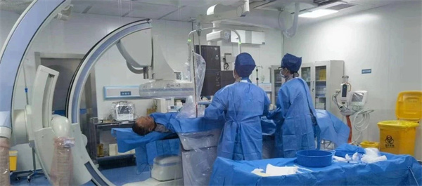 急诊科李博医师接诊后,立即启动胸痛绿色通道,心内科钱俊医师评估后,考虑患者在急诊介入时间窗内,立刻告知了家属病情的危险,急需紧急手术。在为患者生命护航的“绿色通道”,各科室通力合作,导管室人员迅速就位,立即投入到紧张的救治当中。途中患者出现二度房室传导阻滞,急诊上台约十分钟后出现心率、血压下降,病情十分凶险,心血管内科副主任医师吴义权、主治医师夏秋旺沉着冷静应对、默契协作,快速开通血管、稳定血压和心率,成功为堵塞的血管实现再通,使患者脱离了危险。