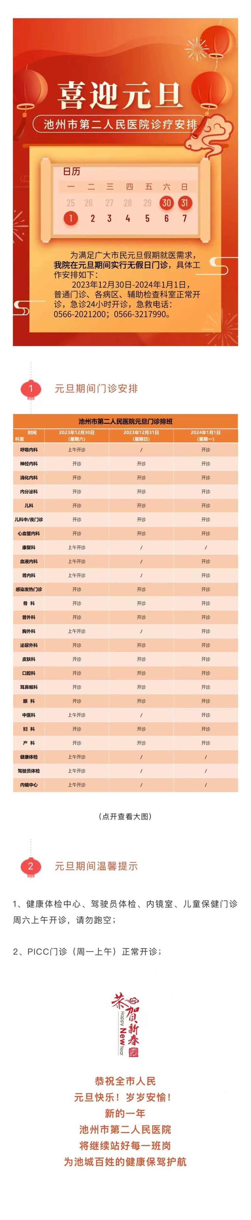 >> 池州市第二人民医院2024年元旦假期安排