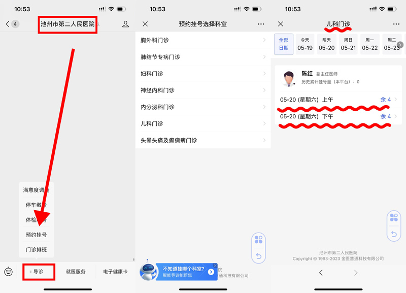 请办理池州市第二人民医院就诊卡后,于分诊台预约挂号