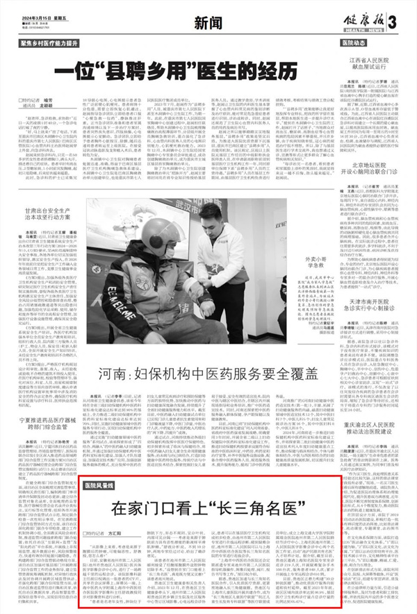 报刊精选|《健康报》节选-在家门口看上“长三角名医”