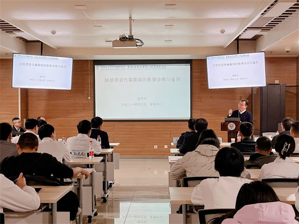 随后开始的“大咖授课”环节,来自安徽医科大学第一附属医院的邵敏教授、袁怀平教授、程中乐教授以及周亮教授分别以《CRO的诊疗与ECMO的宣介》、《肺部侵袭性真菌感染的影像诊断与鉴别》、《后疫情时代侵袭性真菌病》、《超声血流动力学检测中的应用》为题,以现阶段“重症感染领域”的各类前沿课题进行分享,把最新的临床成果和临床经验带到我院。