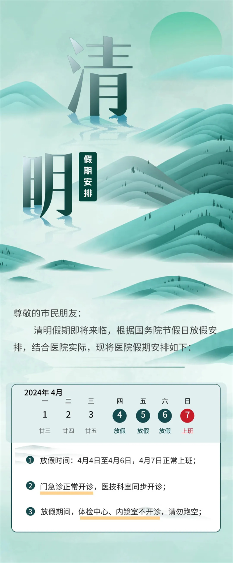 >> 您现在的位置: 首页 >> 服务时间 >> 假期安排|池州市第二人民医院清明节假期安排