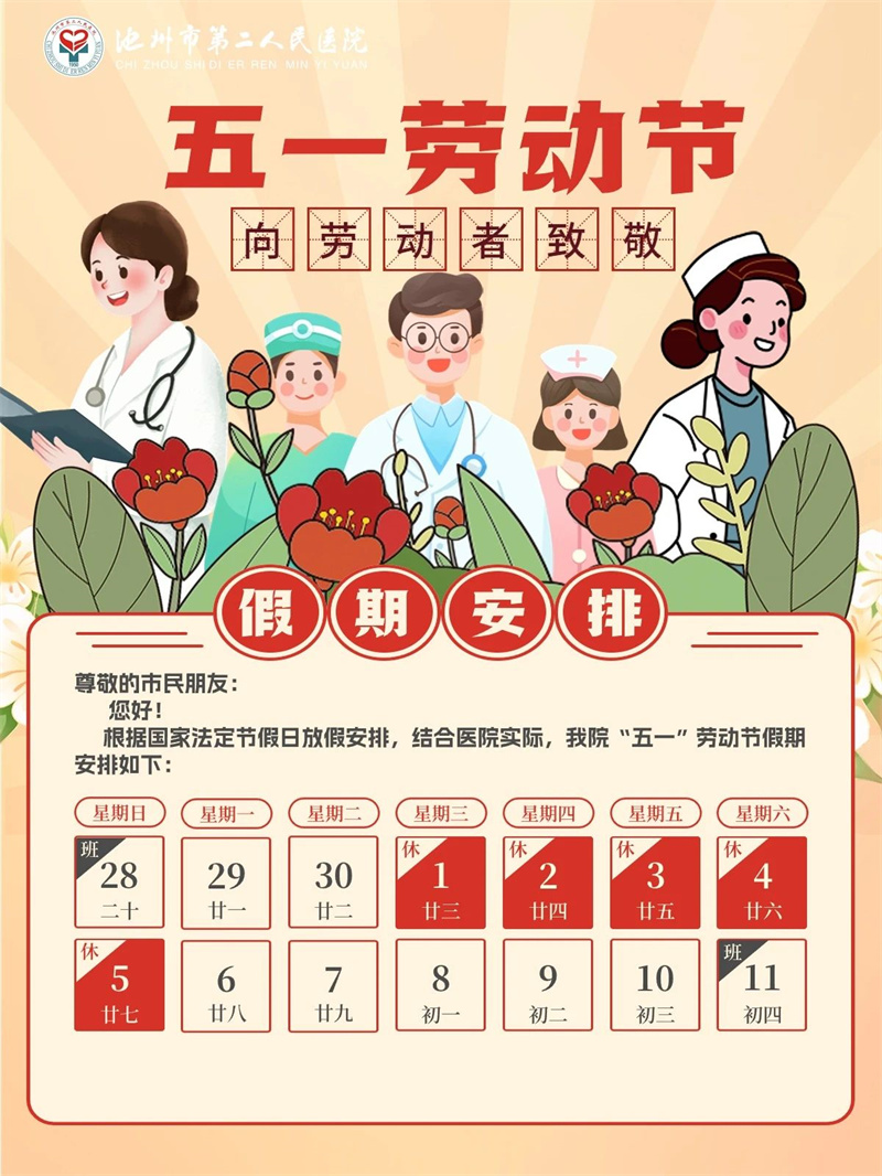 假期安排|池州市第二人民医院五一劳动节假期安排